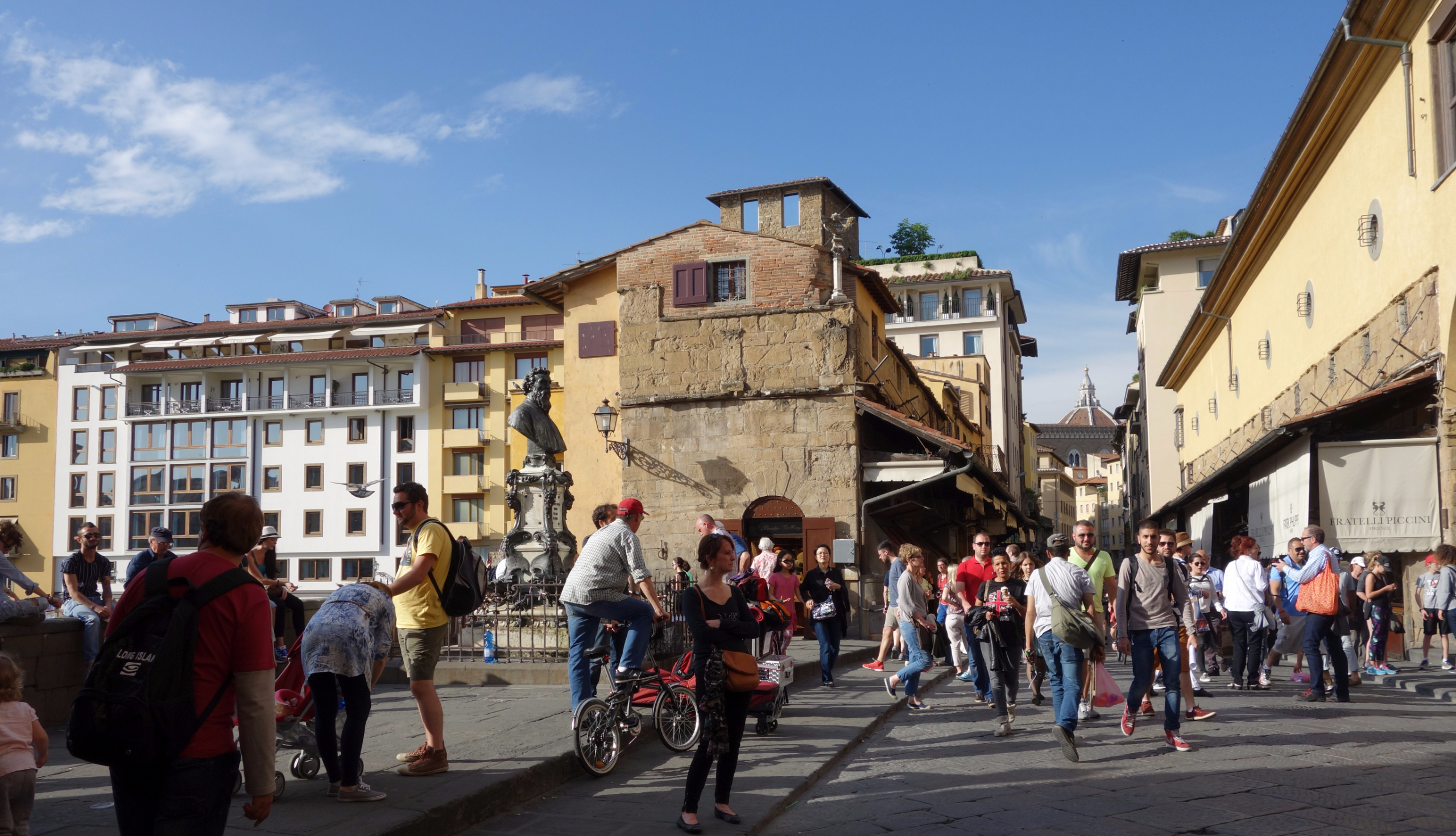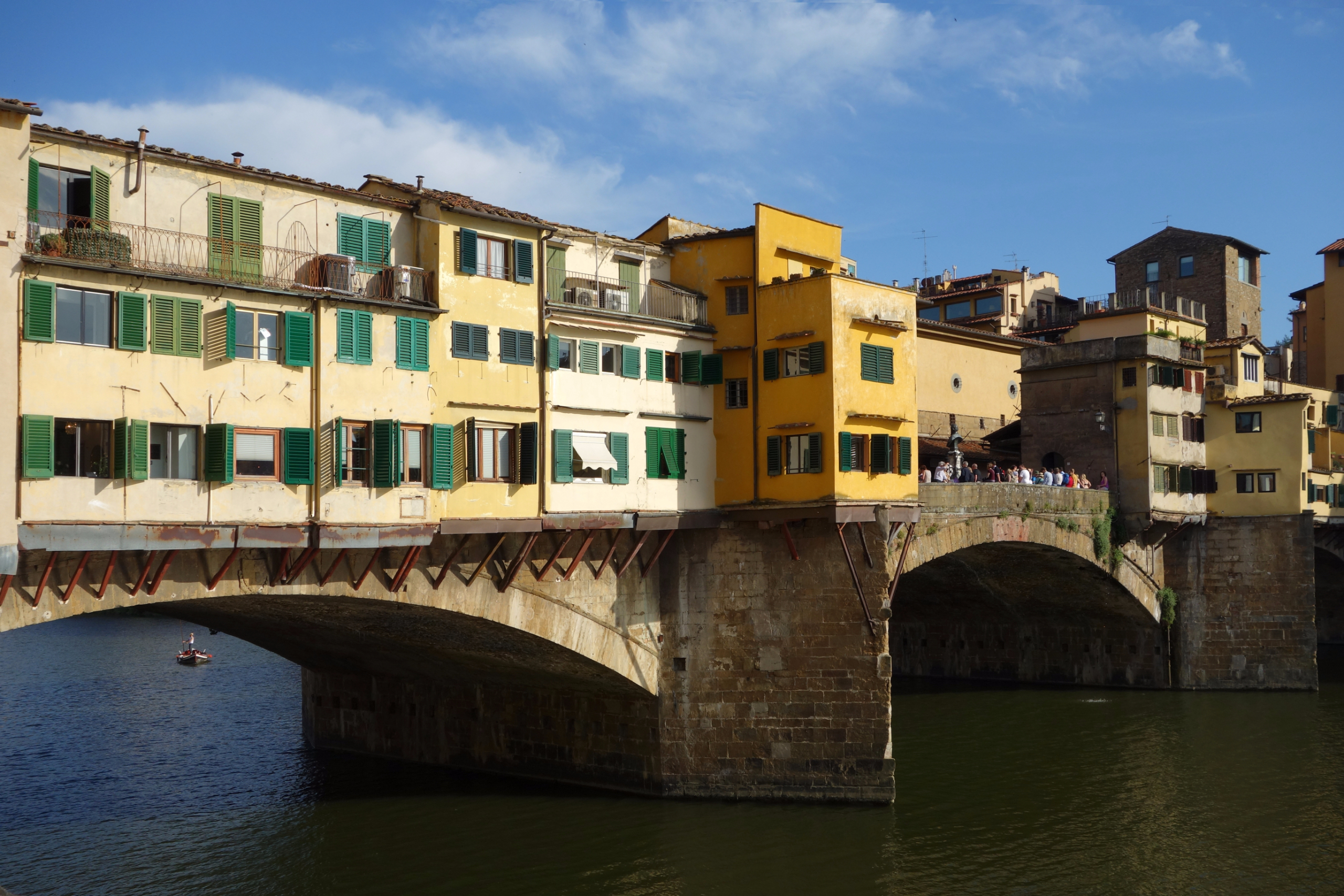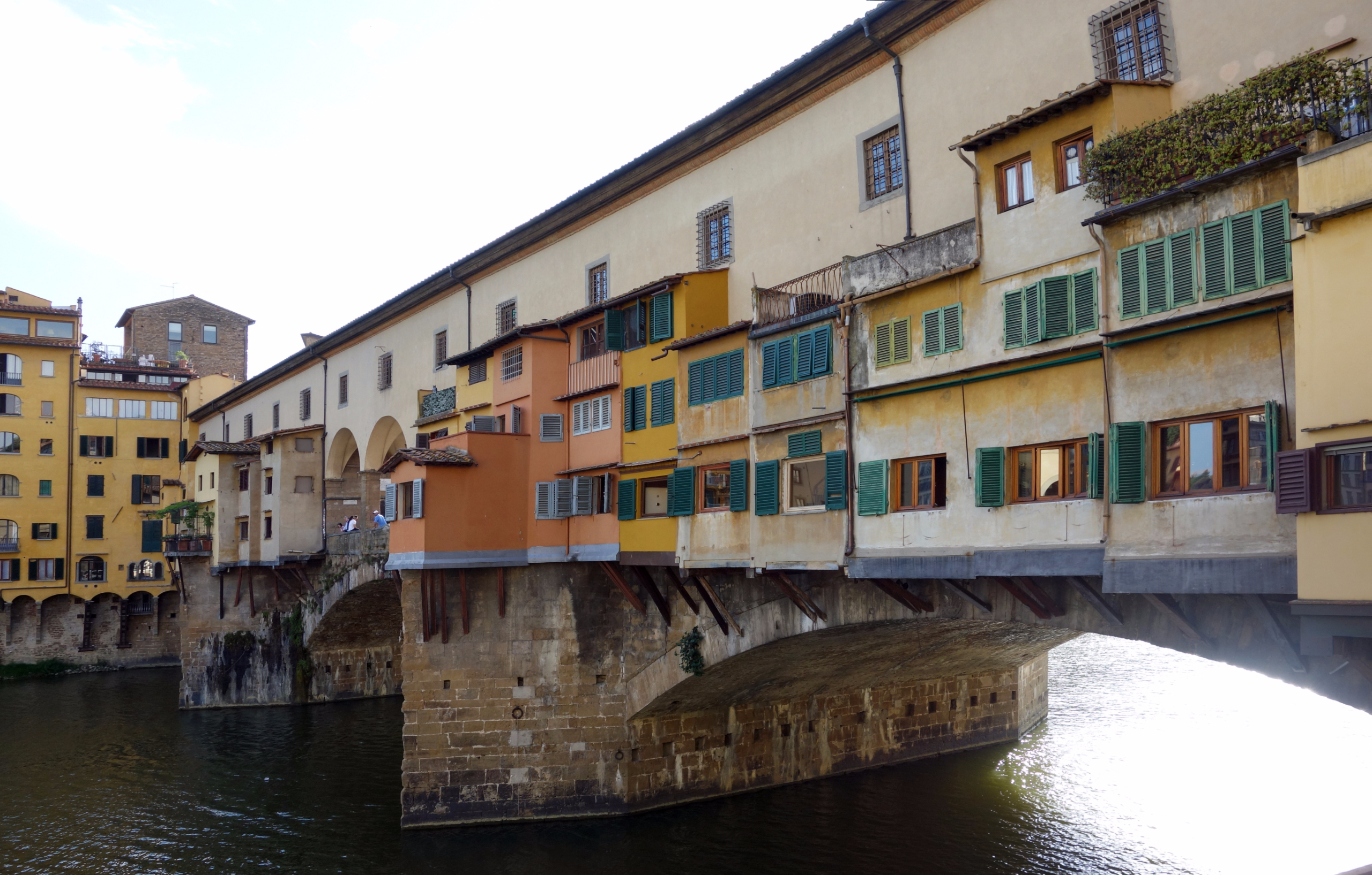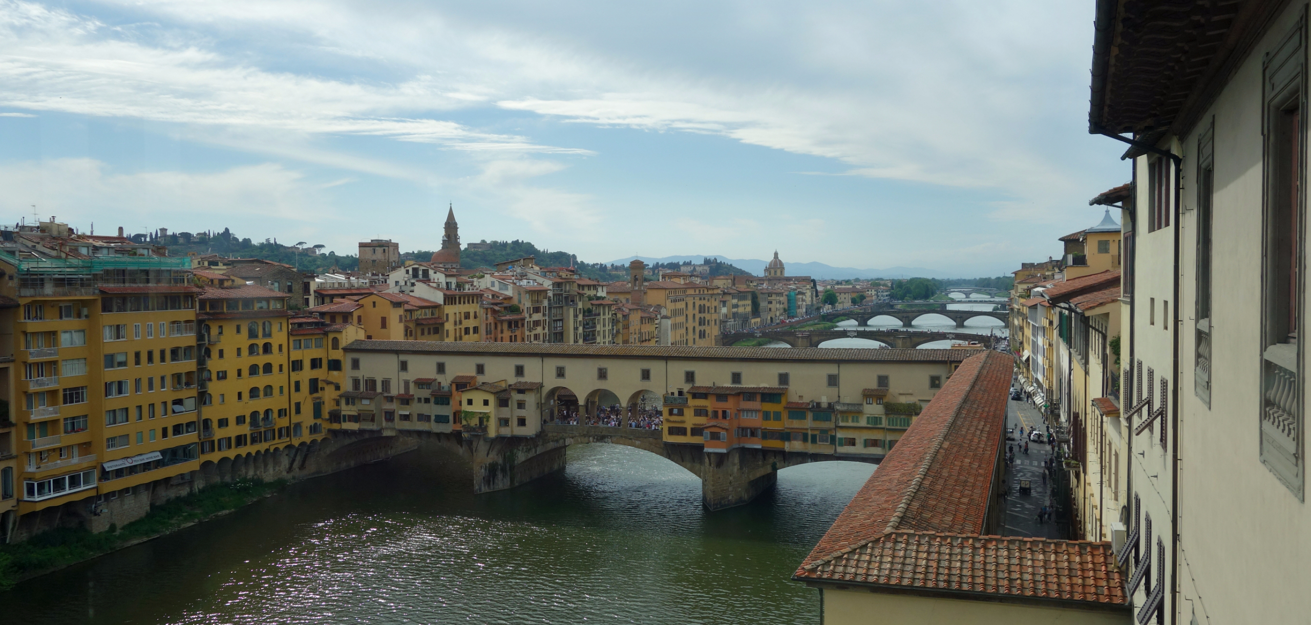 Вид из окна галереи Уффици на мост Понте-Веккьо — самый старый мост во Флоренции и один из самых популярных «открыточных» видов города.