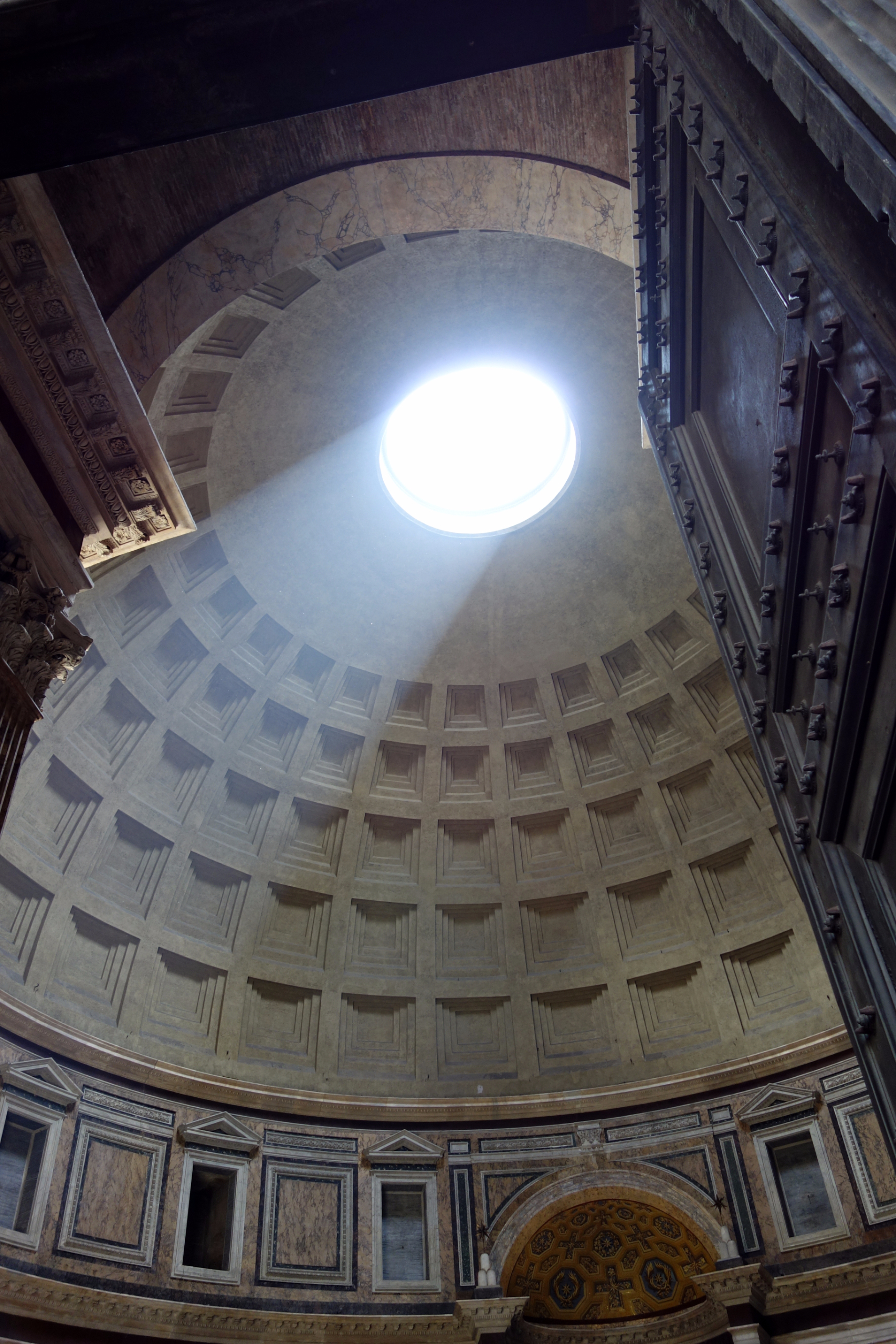 В центре купола находится круглое отверстие диаметром 9 метров, через которое в храм проникает дневной свет. В полдень световой столб наиболее ярок (благодаря ориентации на юг). Свет очень ощутим, он «не растекается», а остаётся в форме гигантского светового луча и становится почти осязаемым.